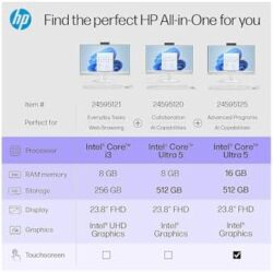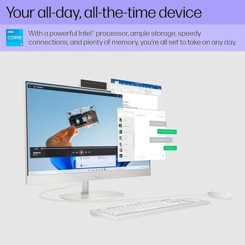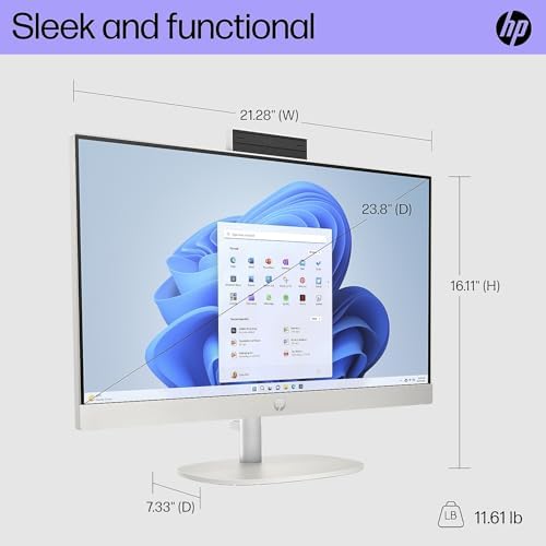 The HP 23.8″ all-in-one desktop PC takes caring for the planet to a new level, with a thoughtful ultra slim design that passes the recycled material vibe check and comes packed with everything needed to conquer any day. This slim desktop PC empowers you to do more while using less. Responsibly manufactured using postconsumer recycled and ocean-bound plastics, and is EPEAT Gold registered and ENERGY STAR . With a powerful processor, upgraded memory, and enhanced multitasking features, there’s no compromise for heightened performance.